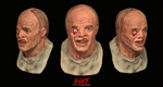 Sculpted in clay, then molded in ultracal to produce latex copies. Hand painted with latex paints and acrylics. I try to sculpt all my masks to fit at least my head size which is 24.5in. My masks usually fit anyone around 22-25in heads but I can not guarantee they will fit everyone. This particular mask is a little big on me. I may eventually remold it slightly smaller.
