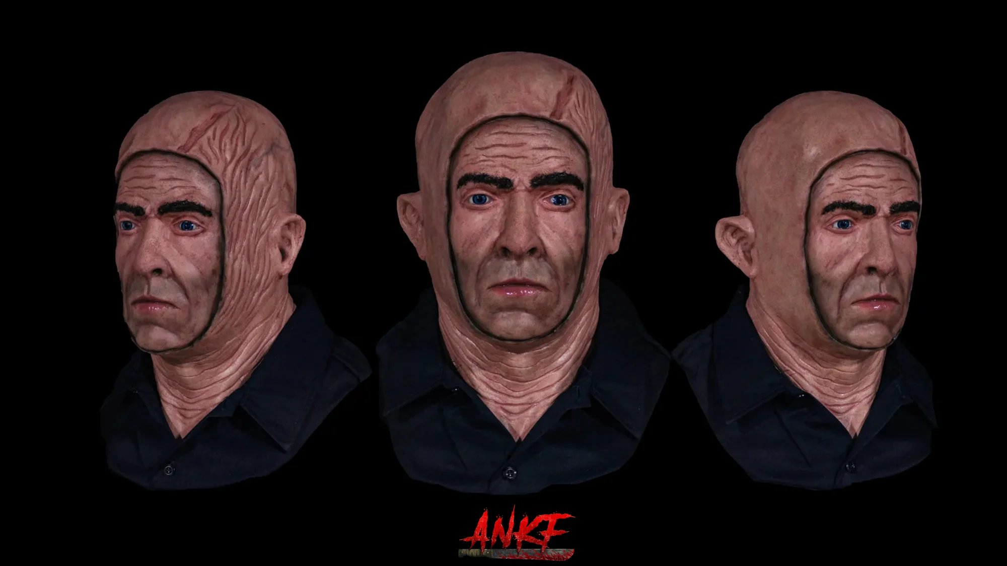Sculpted in clay, then molded in ultracal to produce latex copies. Hand painted with latex paints and acrylics. Comes with real human hair eyebrows!