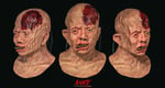 Sculpted in clay, then molded in ultracal to produce latex copies. Hand painted with latex paints and airbrush acrylics. Comes with resin teeth and acrylic eyes. Display only version is not foam filled. Can easily be stuffed tightly with plastic bags. Display only shirts are attached with glue.